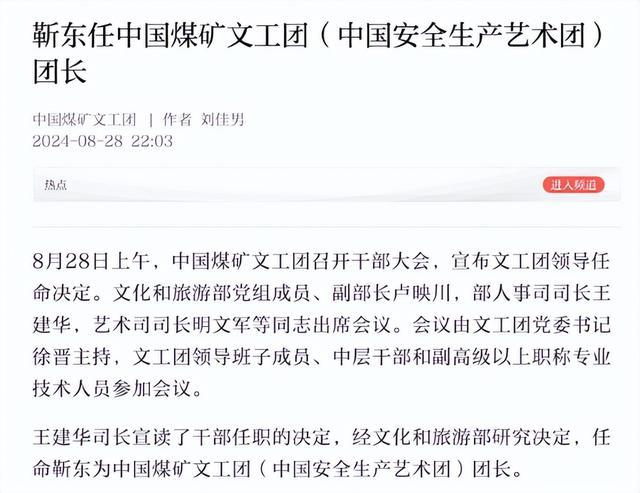 靳东并非一步到位担任团长,他2003年从中戏毕业后,就参加中国煤矿文工团,从泛泛演员作念起。