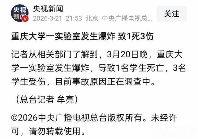 3月20号晚上8点,重庆大学科学城校区的一栋本质楼里倏得响起一声爆炸,这不是演习,而是确凿发生了事故,爆炸发生在电子显微镜本质室,那时莫得上课,四名研二学生正在进行本质,又名学生迅速弃世,另外三名学生被无边送往病院重症监护室,消防车在15分钟后才赶到现场,监控摄像骄气火警系结伙直处于黑屏情景,这个开发早就损坏了,却莫得东说念主去修理。