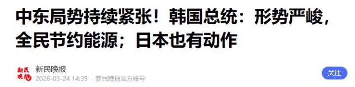 中东方位持续弥留!韩国总统:局势严峻,全民精打细算动力;日本也有看成——新民晚报