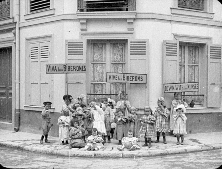 要了解这个项方针主旨和精神,你不成不看1907年百代公司的短片《保姆歇工》(La grève des nourrices)。这是一部带有激进主义色调的箝制升级的追赶笑剧,保姆们在全市范畴内的歇工形成了混乱,恶果,宪兵们挥舞着婴儿奶瓶(并赶快被捣毁职务),伤心的幼儿们组织起了我方的工会。