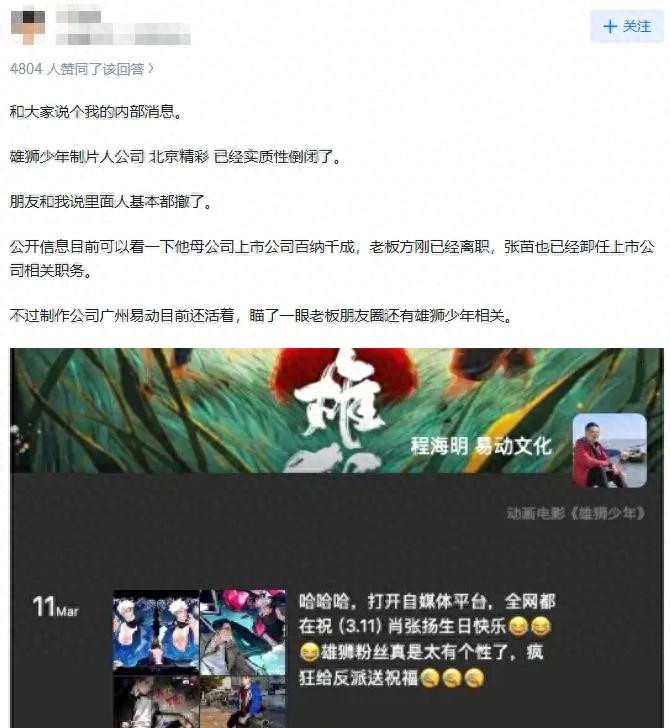 最近,有网友爆料,《雄狮少年》这部电影背后的制片公司北京精彩,仍是“实践性倒闭”。