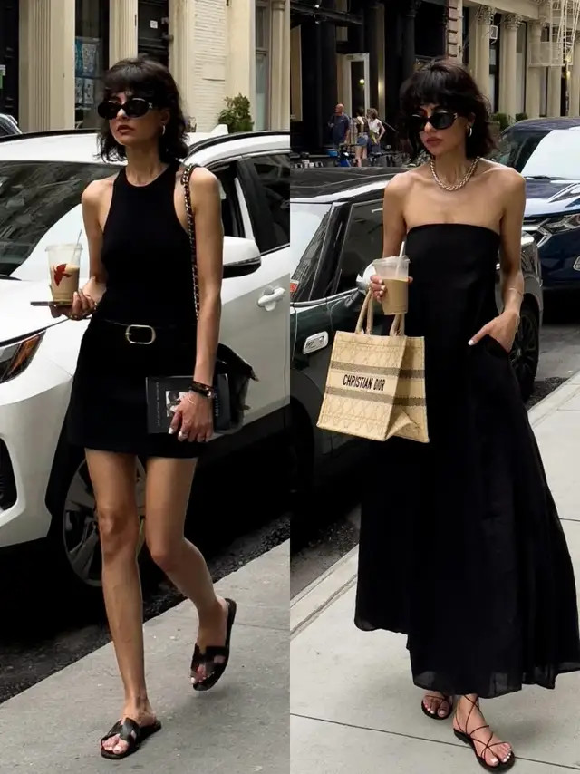 穿衣相比斗胆的女生不妨尝试孤单黑的利落玄色背心配玄色短裙,脚踩玄色凉拖鞋,表示优好意思天鹅颈与纤细手臂,小性感拿执得刚刚好。