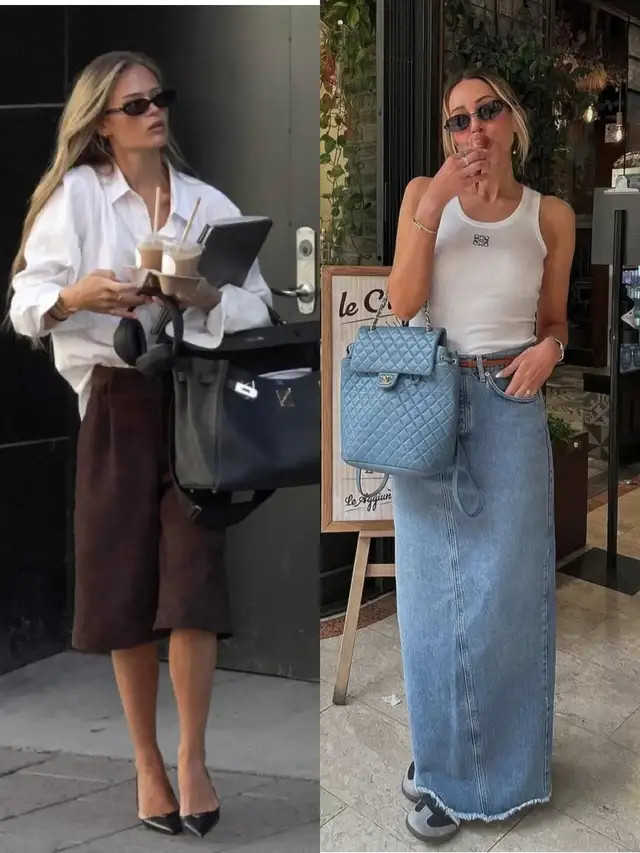 遍地开花,暖意渐浓,恰是褪去清闲冬衣的好时节。不妨像上头这位先锋达东说念主,用一件白色背心配上一条牛仔直筒半裙,脚踩拼接色德训鞋,清楚干净,慈爱又眇小。