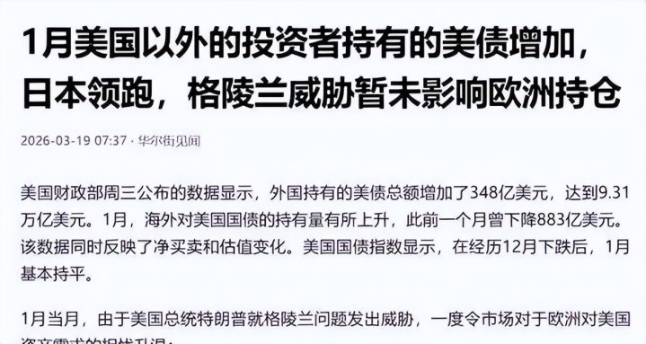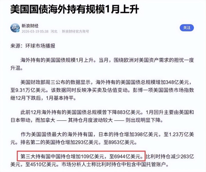 好意思国财政部高调告示了一组数据:2026年1月,中国增持了109亿好意思元好意思债,持仓回升至6944亿好意思元。