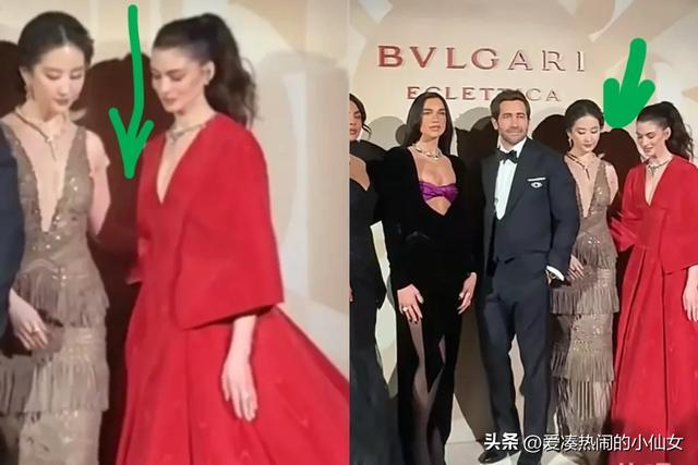 最终的合照是这么的,让了半个身位的刘亦菲的占的版面小了,然则她这一个善意的小细节,却大获好评,彰显了格式!